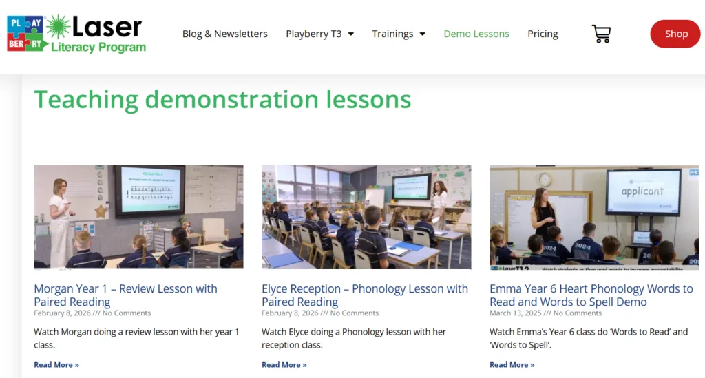 Our growing library of demonstration videos of real-time teaching is an amazing resource. Many of these have masterclass notes that pull together what you see in the videos into their granular parts, so you can see the mechanisms at work. Many schools have built staff training sessions around parts of these videos. These are exemplars of Playberry Laser lessons.