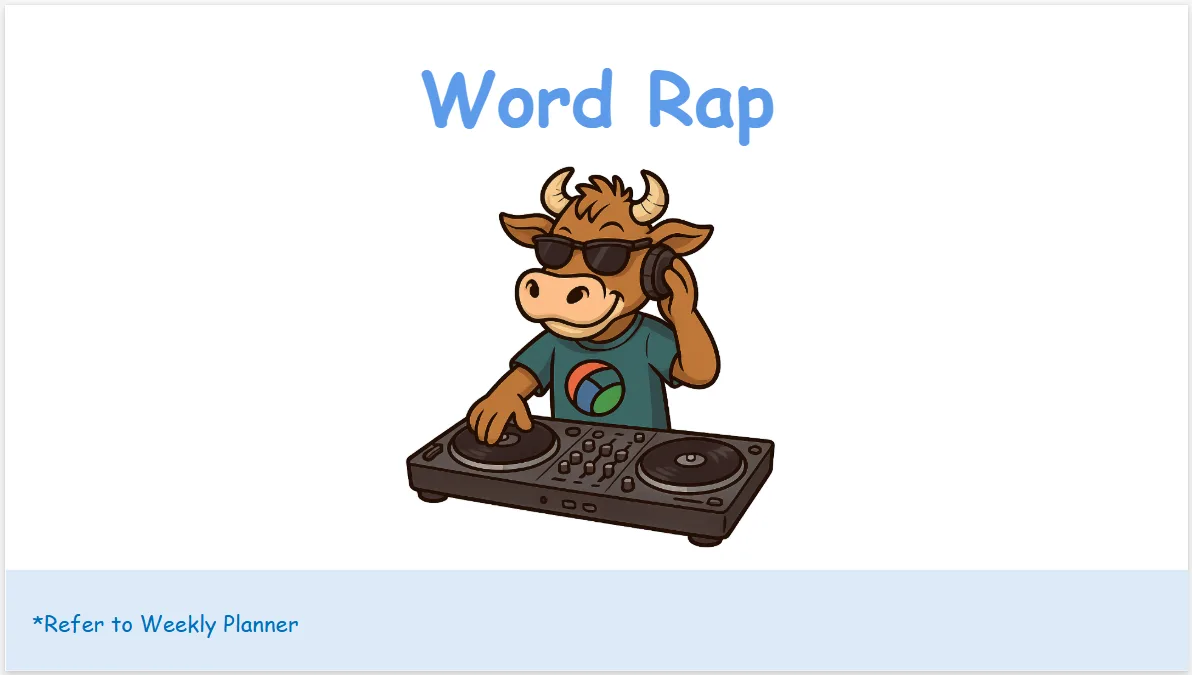 In Phase 1, we’ve added a new routine for practising phoneme blending, an essential phonemic awareness skill. We call it ‘Word Rap’. Word Rap is in 2026 slides (look out for DJ Cow), and weekly planners and it slots in between ‘Words to Spell’ (review) and the new teaching point. It’s a straightforward choral routine, and we think the kids will love it. Watch the video above of Elyse and her students from Star of the Sea School doing a Word Rap!