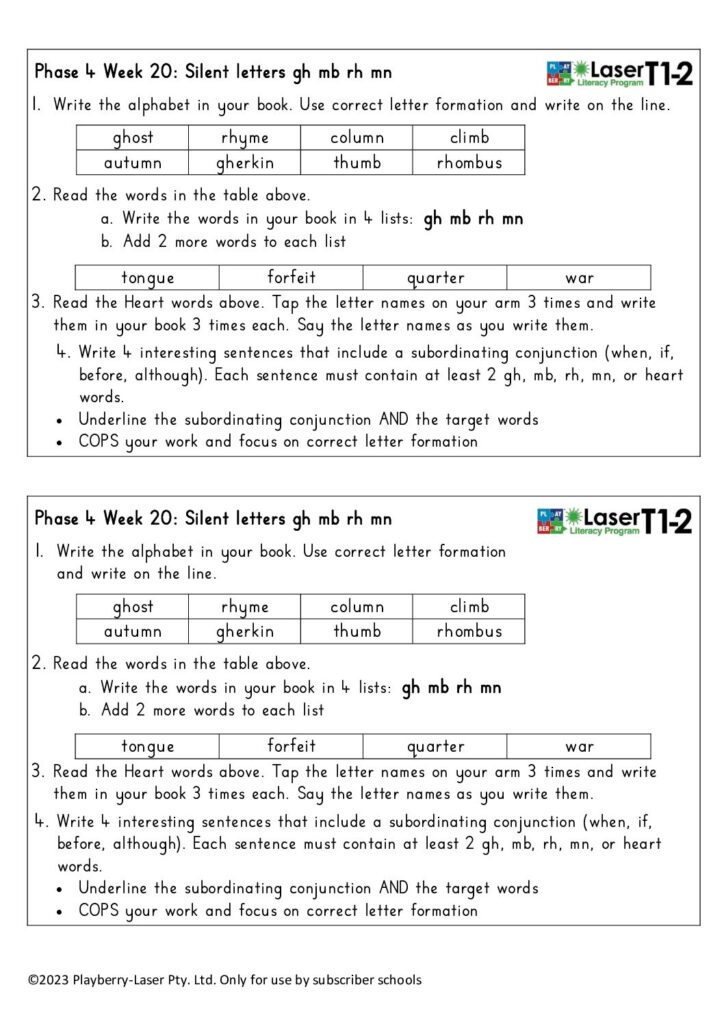 Week 20 Silent letters gh mb rh mn