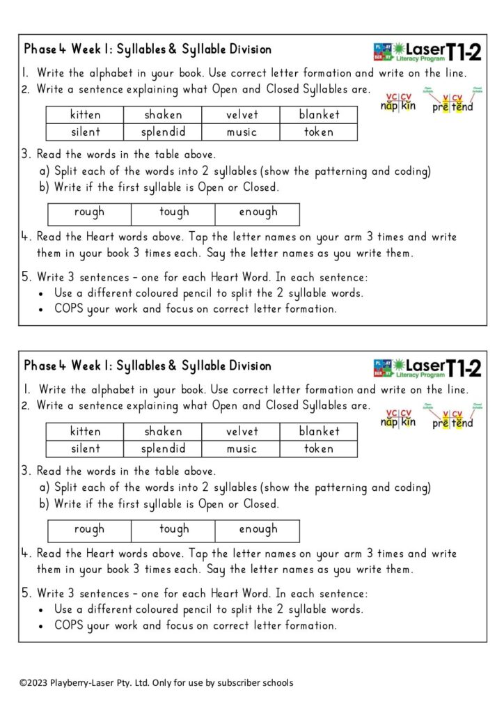 Week 1 Syllables and Syllable Division