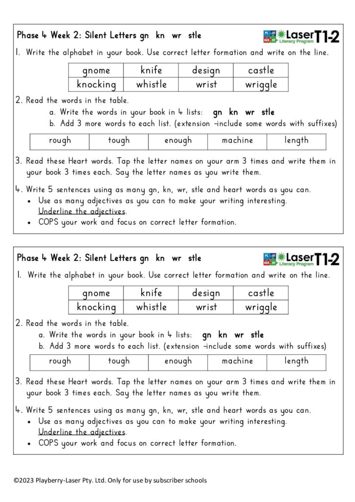 Week 2 Silent Letters gn kn wr stle