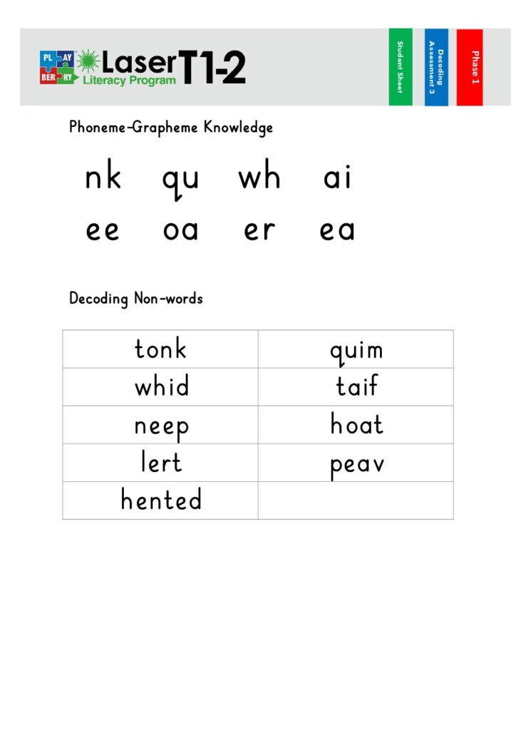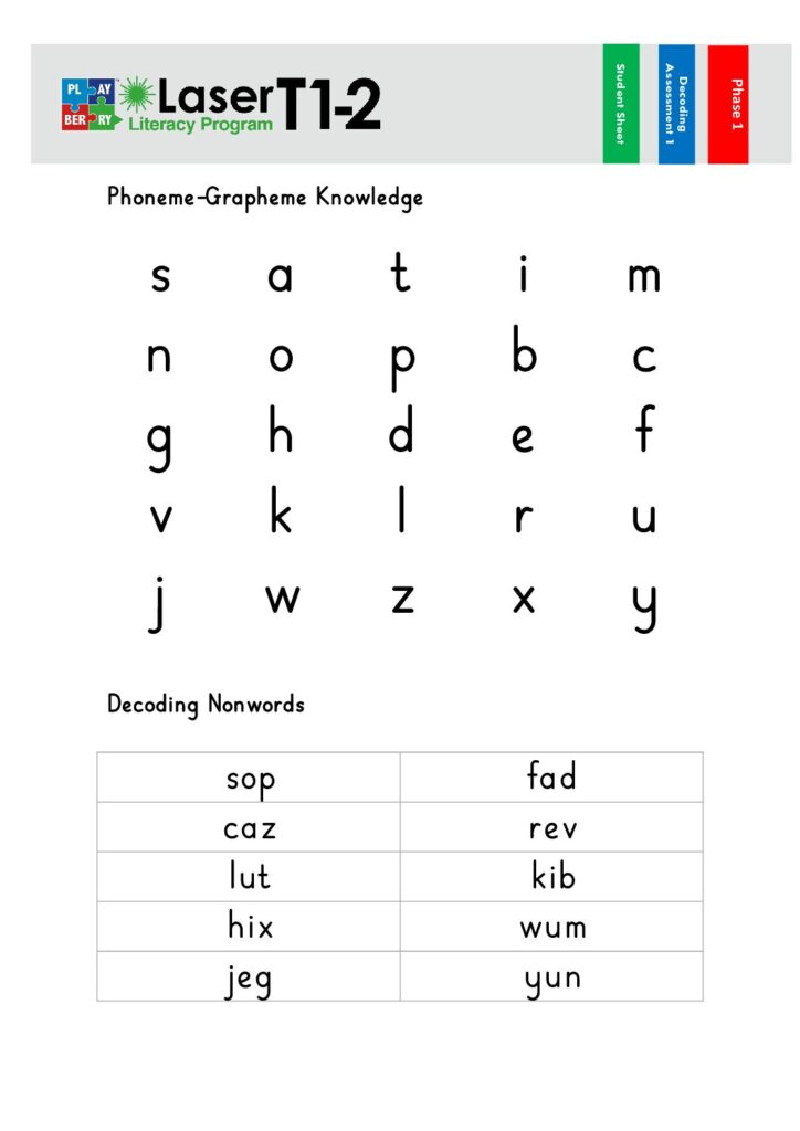 Phase 2 Decoding Test 1 – Teacher Sheet