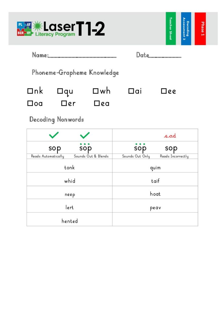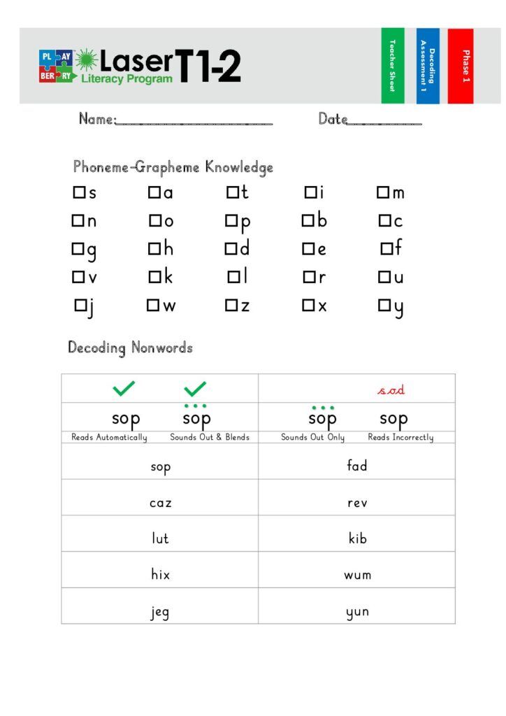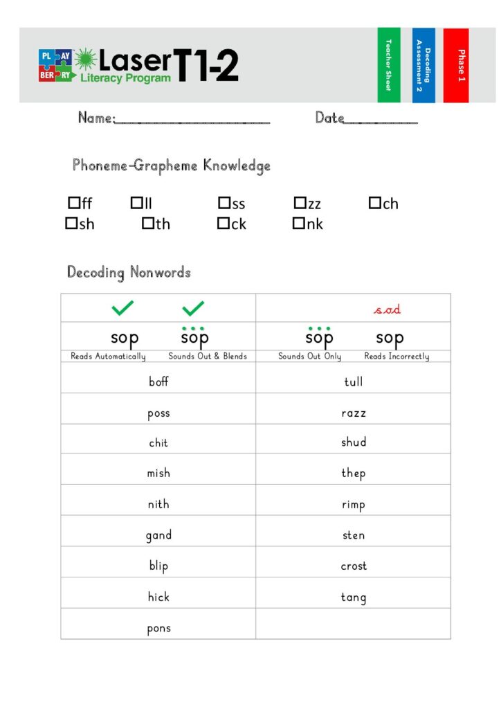 Phase 1 Decoding Test 1 – Teacher Sheet