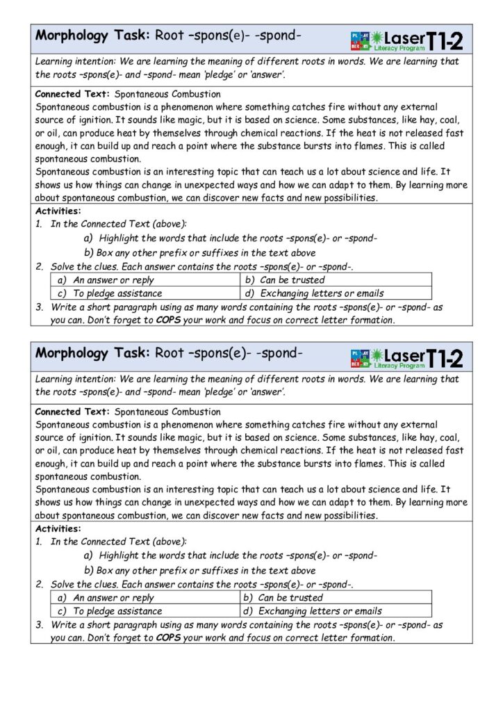 Phase 6 Week 36 Root -spons(e)- -spond- Morphology Task