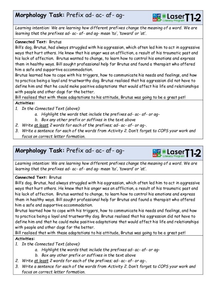 Phase 6 Week 21 Prefix ad- ac- af- ag- Morphology Task