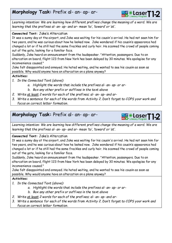 Phase 6 Week 21 Prefix al- an- ap- ar- Morphology Task