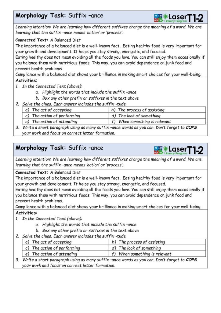 Phase 6 Week 23 Suffix -ance Morphology Task
