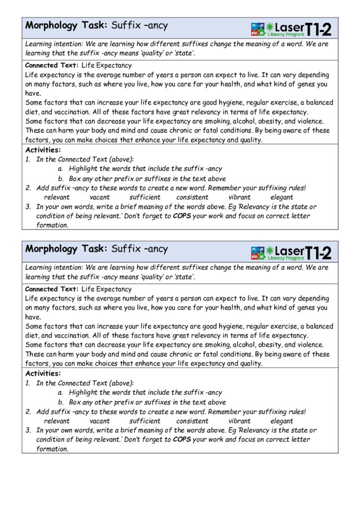 Phase 6 Week 23 Suffix -ancy Morphology Task
