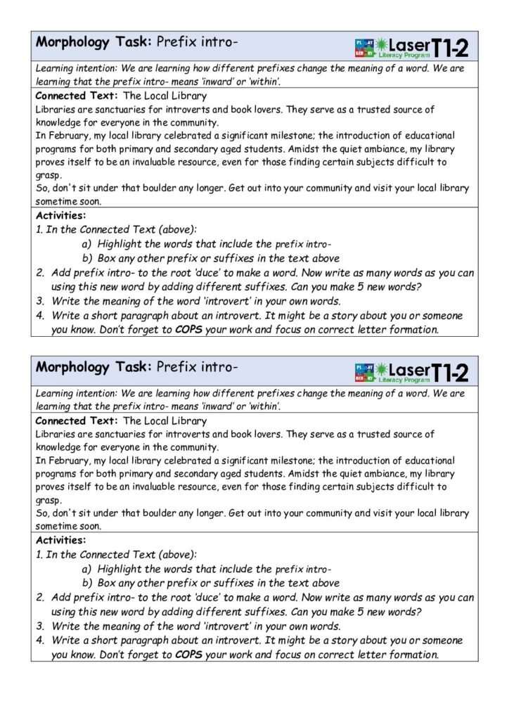 Phase 4 Week 33 Prefix intro- Morphology Task