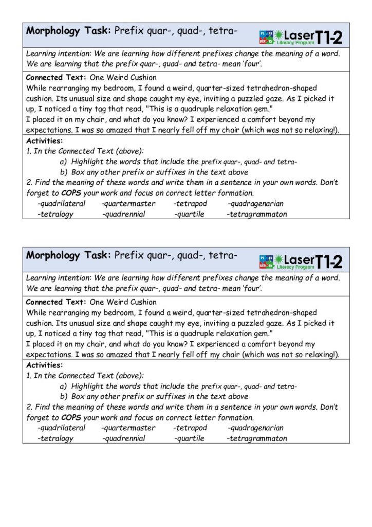 Phase 4 Week 29 Prefix quar- quad- tetra- Morphology Task