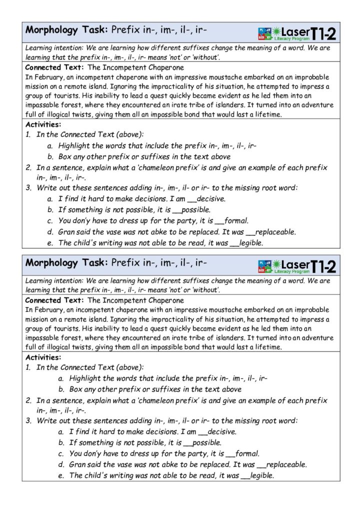 Phase 4 Week 17 Prefix in- im- il- ir- Morphology Task