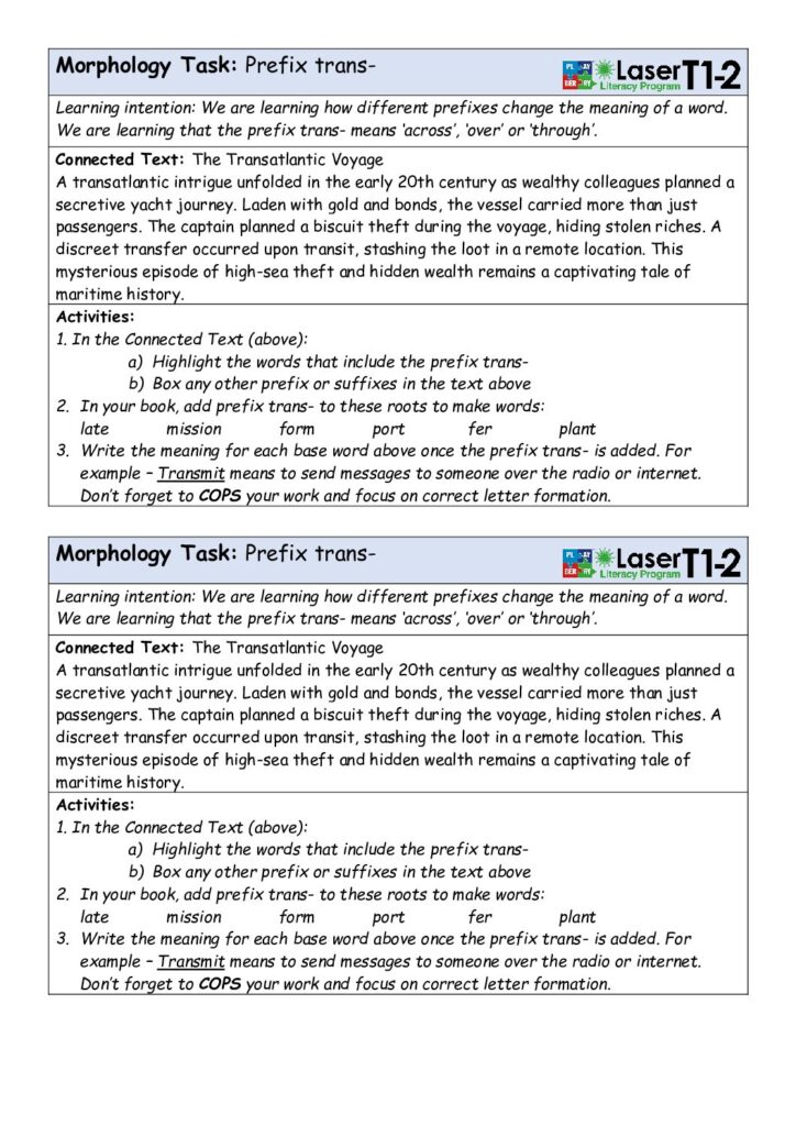 Phase 4 Week 19 Prefix trans- Morphology Task