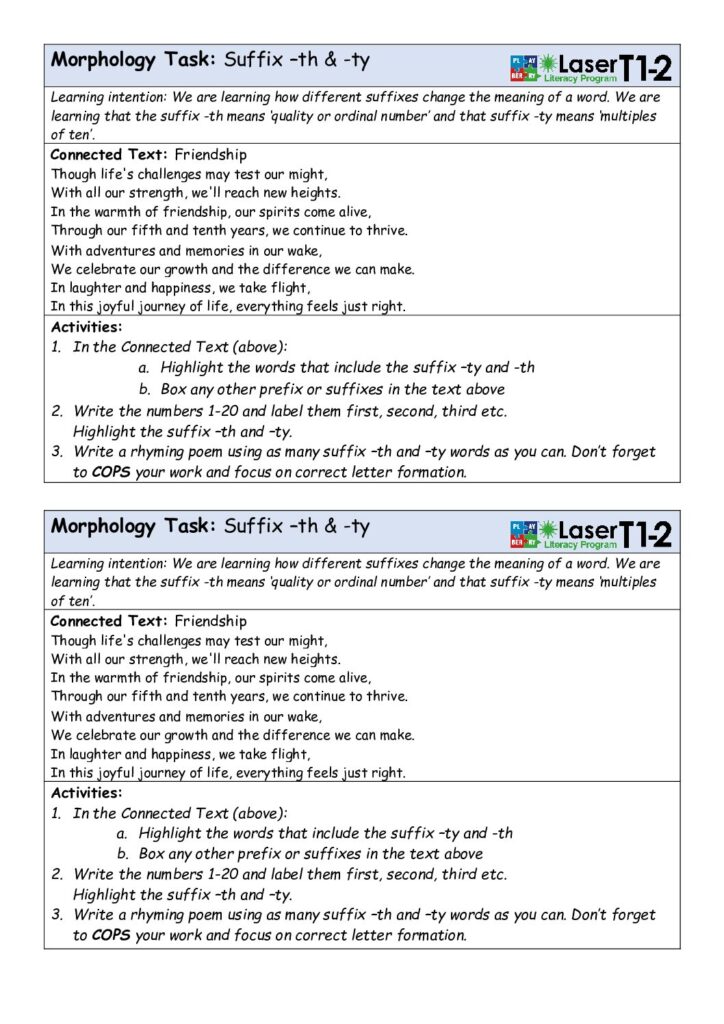 Phase 4 Week 11 Suffix -th Suffix -ty Morphology Task
