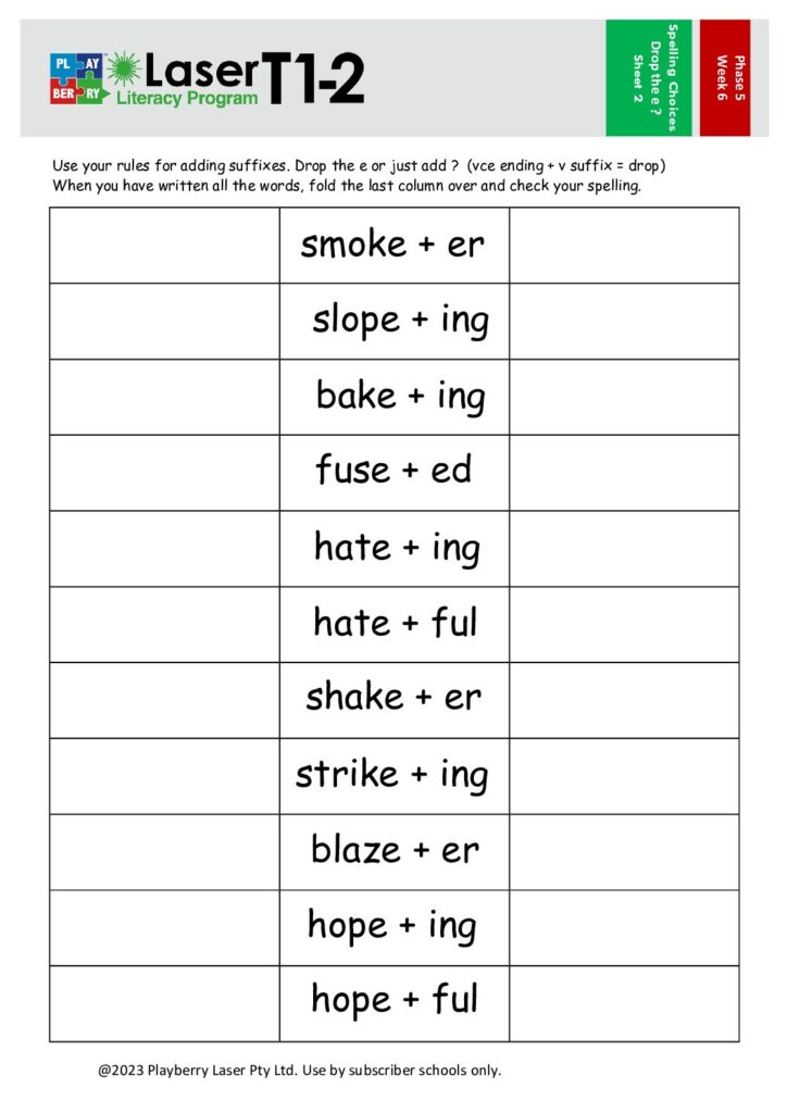 Spelling Choices Worksheet – Drop ‘e’ Rule 1