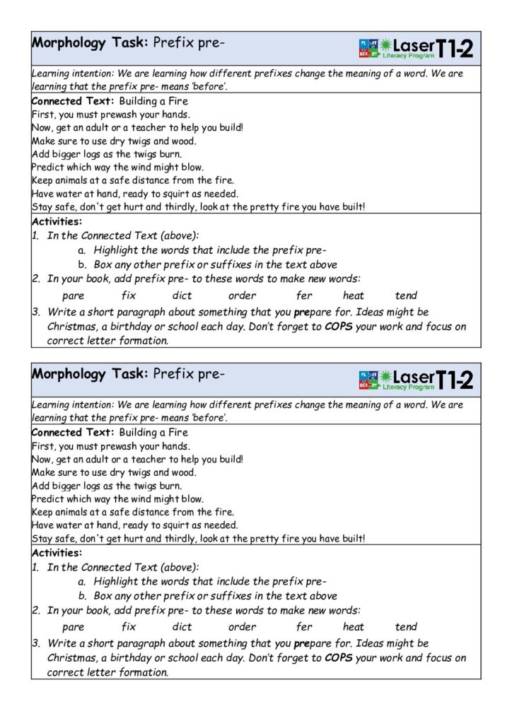 Phase 3 Week 8 Prefix pre- Morphology Task