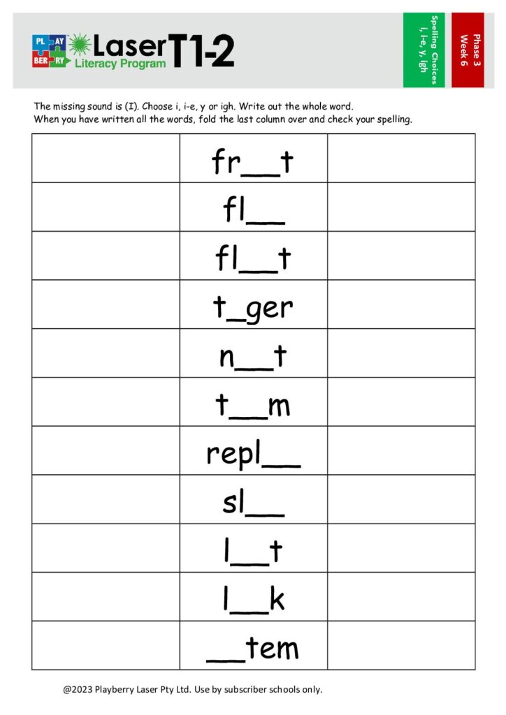 Spelling Choices Worksheet – i-, i-e, igh, or y?