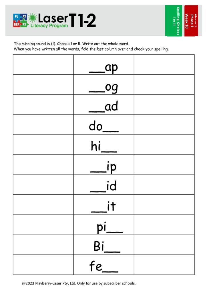 Spelling Choices Worksheet – l or ll?