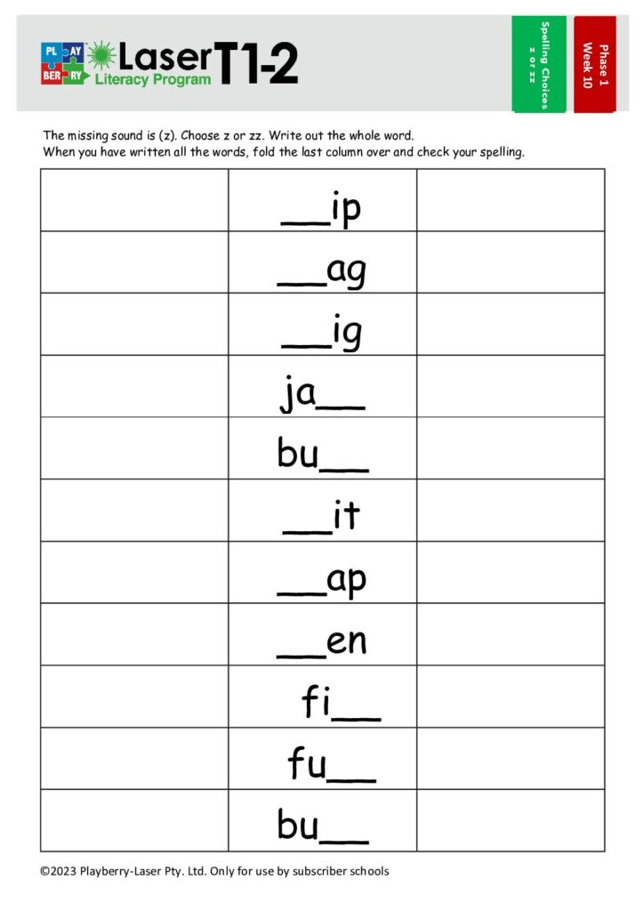 Spelling Choices Worksheet – z or zz?