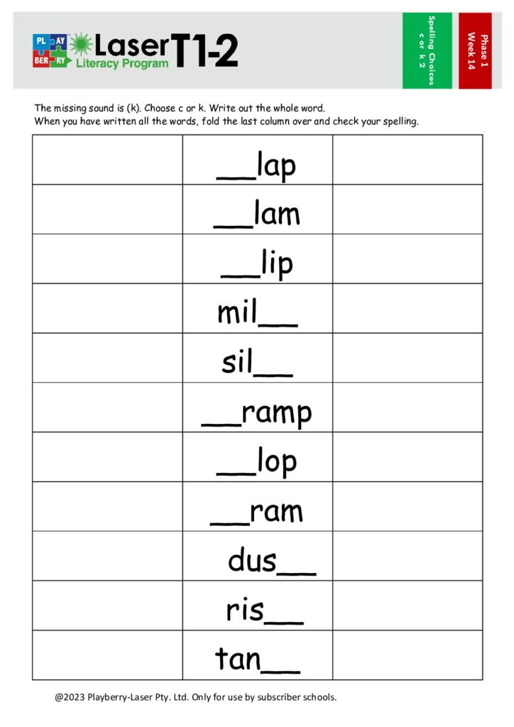 Spelling Choices Worksheet – c or k?