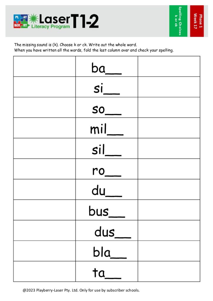 Spelling Choices Worksheet – k or ck?