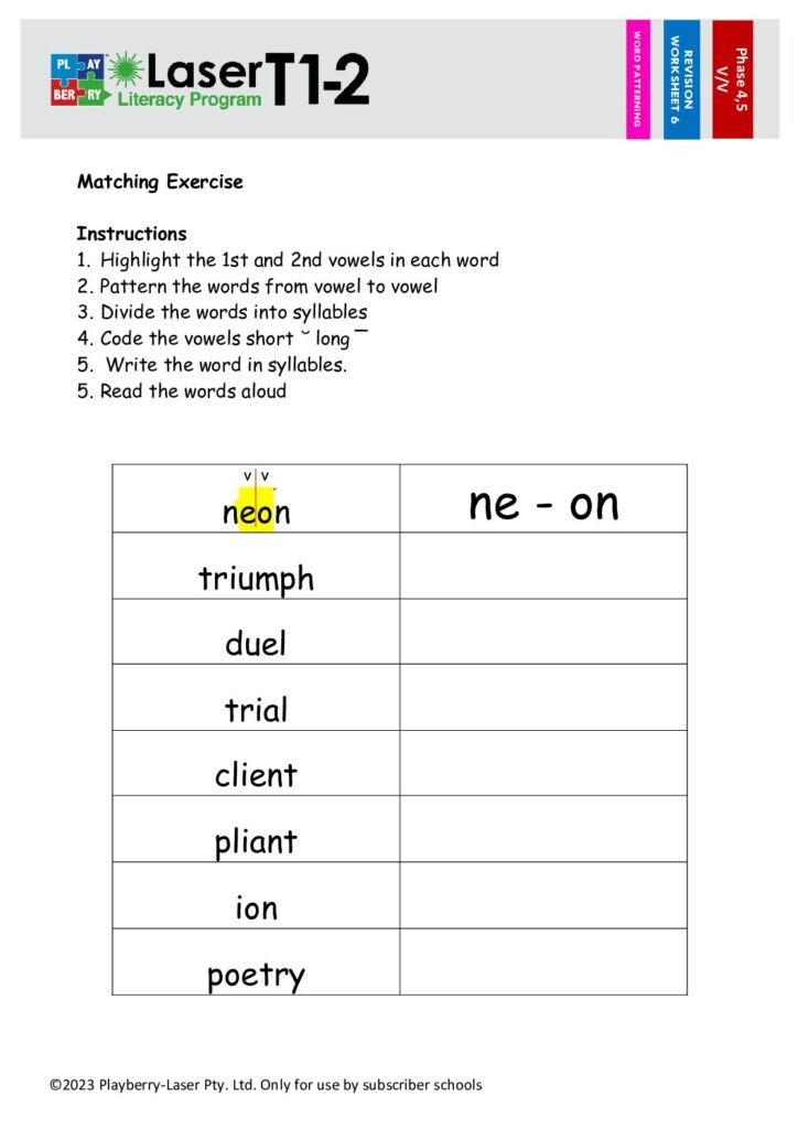 Syllable Division Worksheet V/V 6
