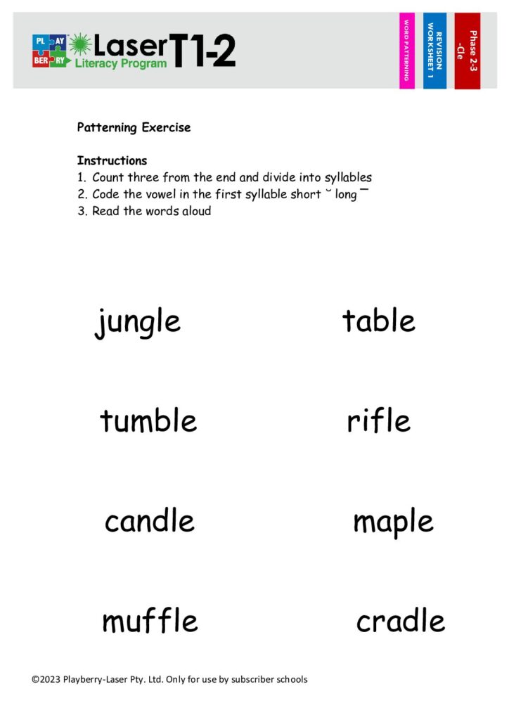 Syllable Division Worksheet -CLE 1