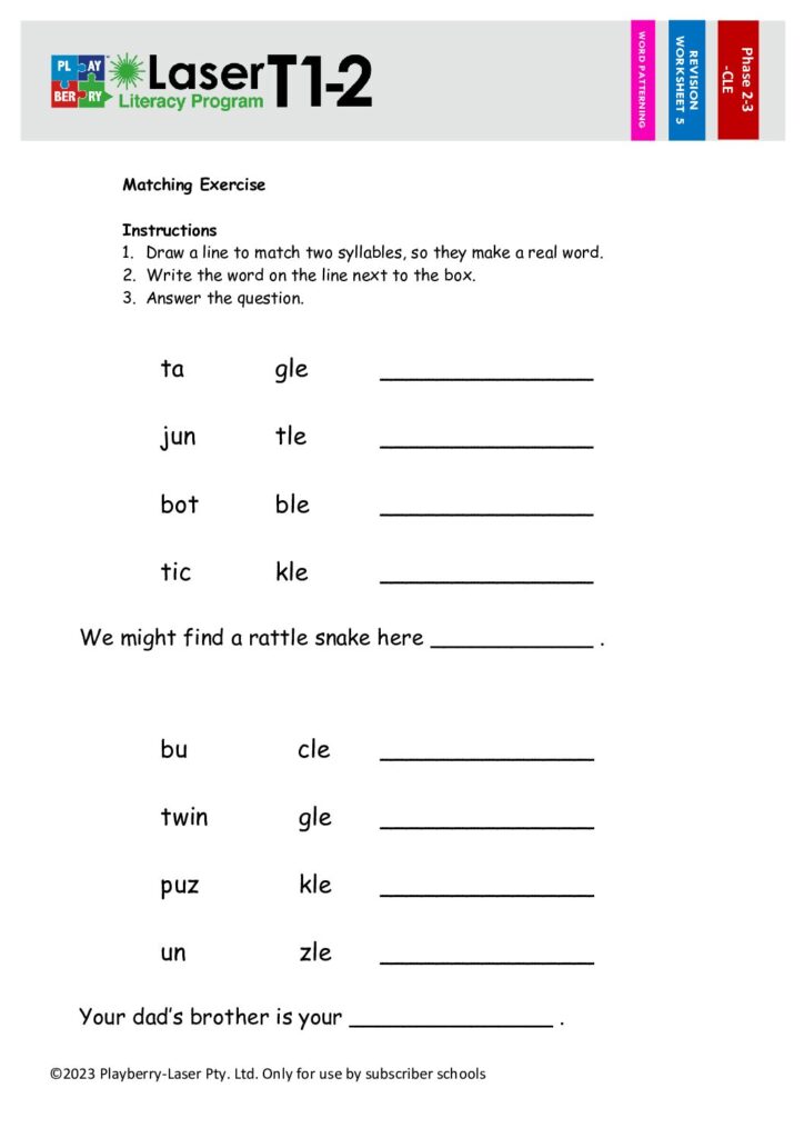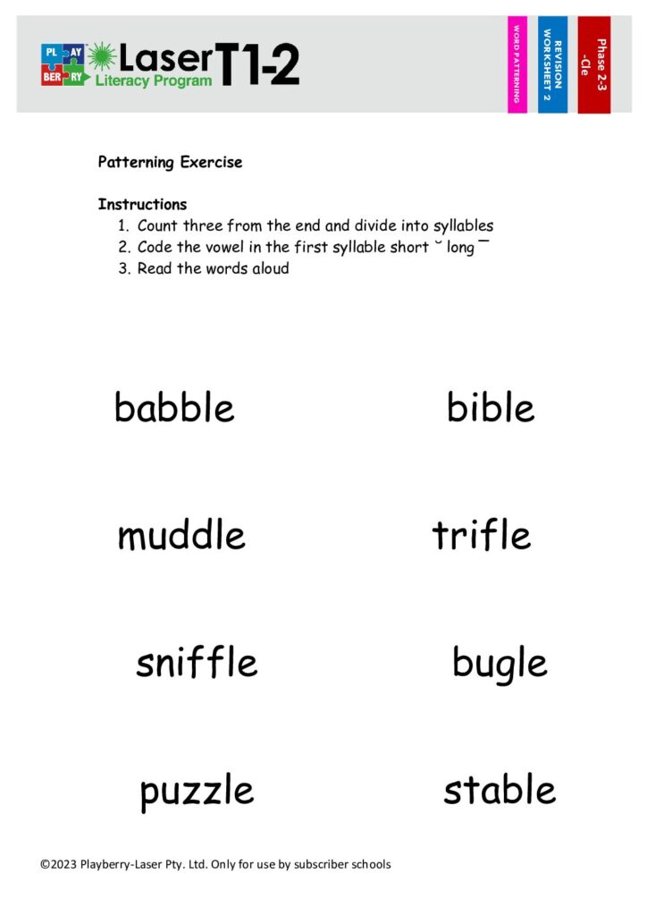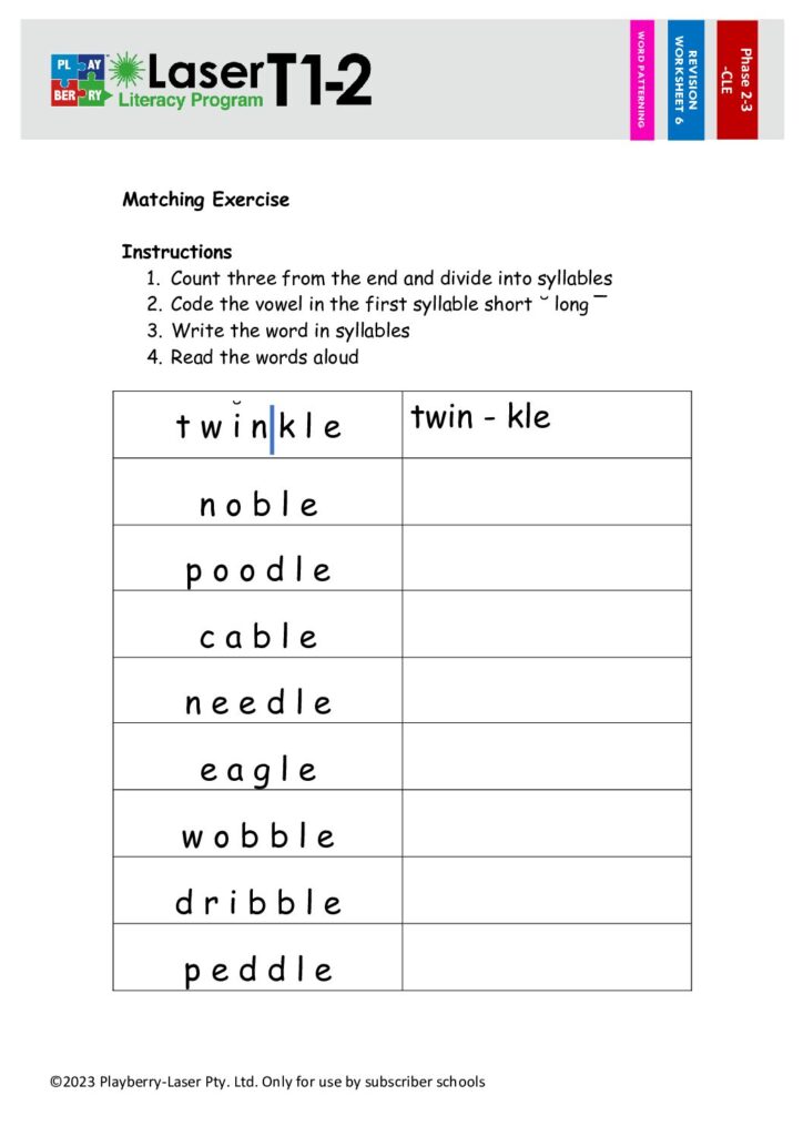 Syllable Division Worksheet -CLE 2