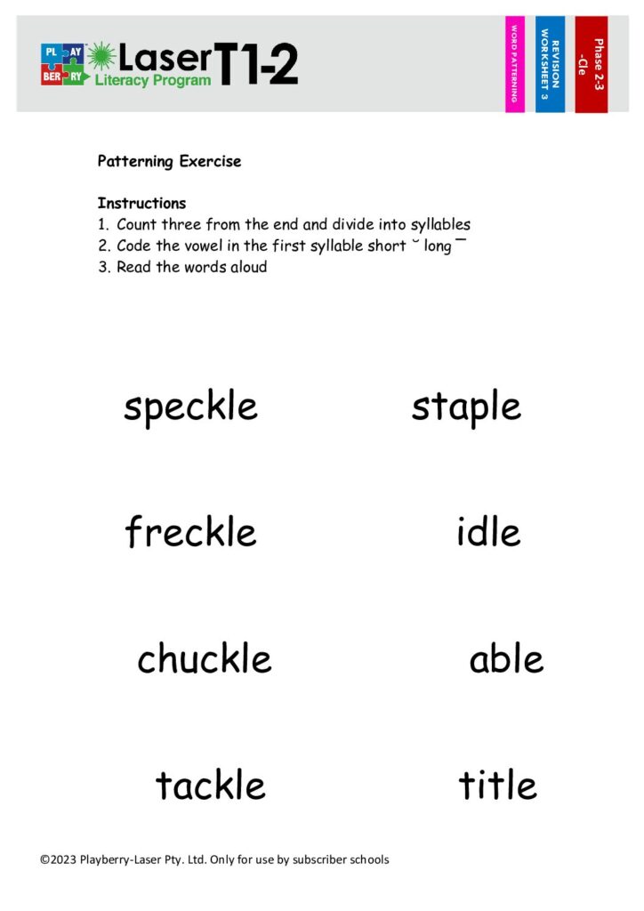 Syllable Division Worksheet -CLE 3