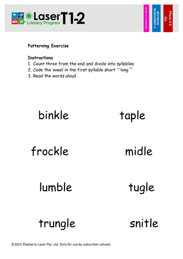 Syllable Division Worksheet -CLE 4