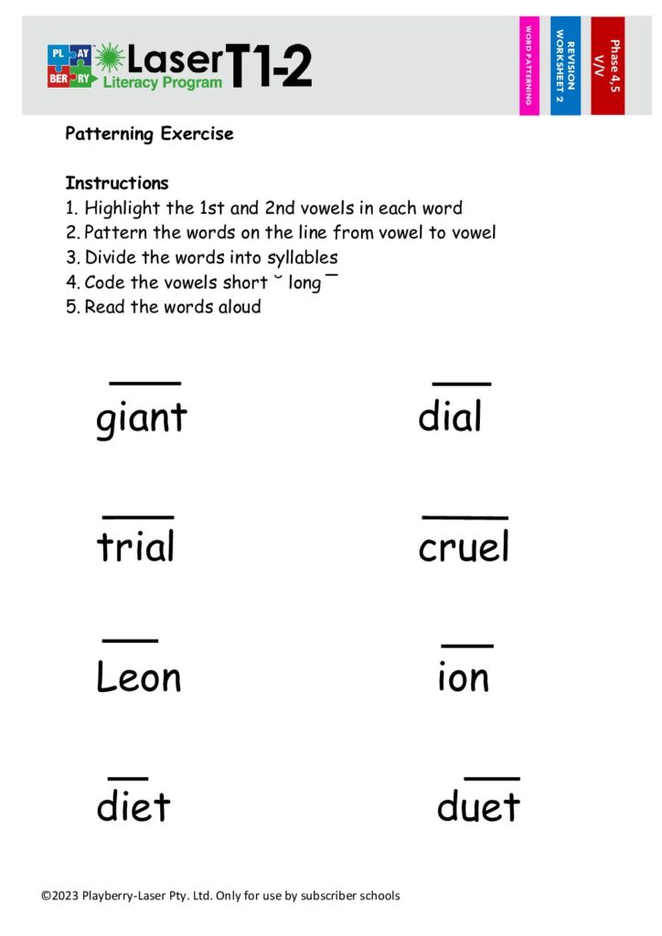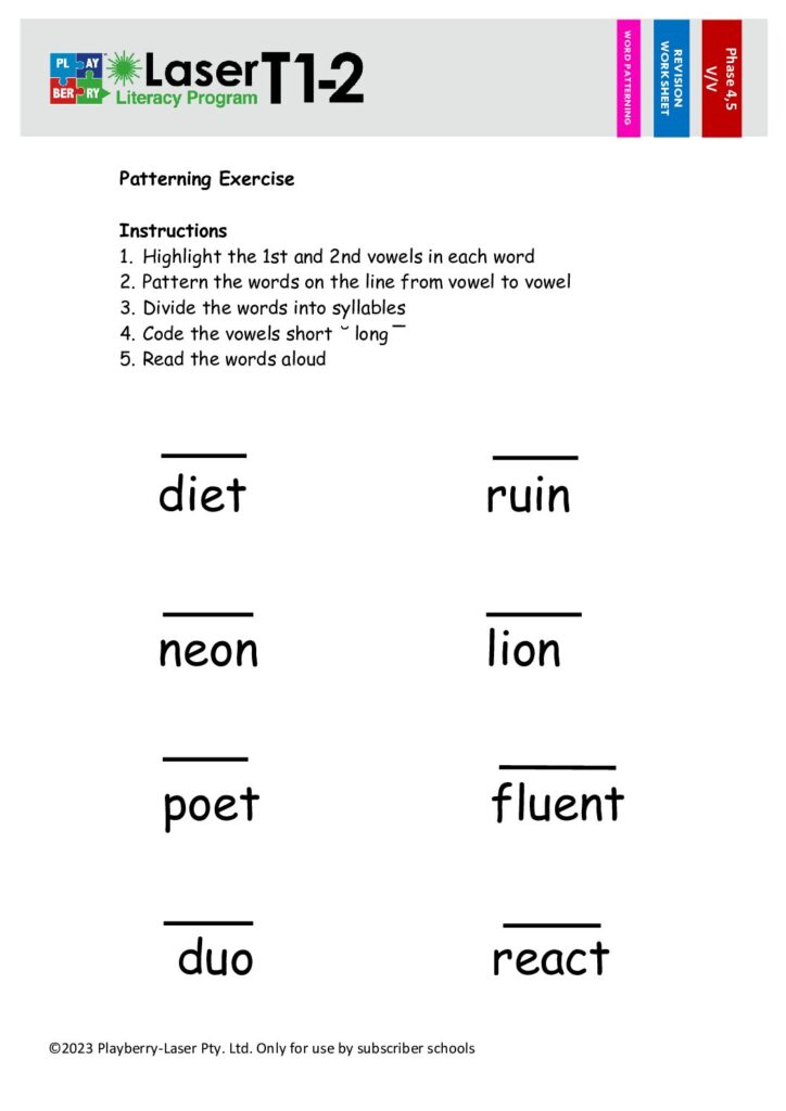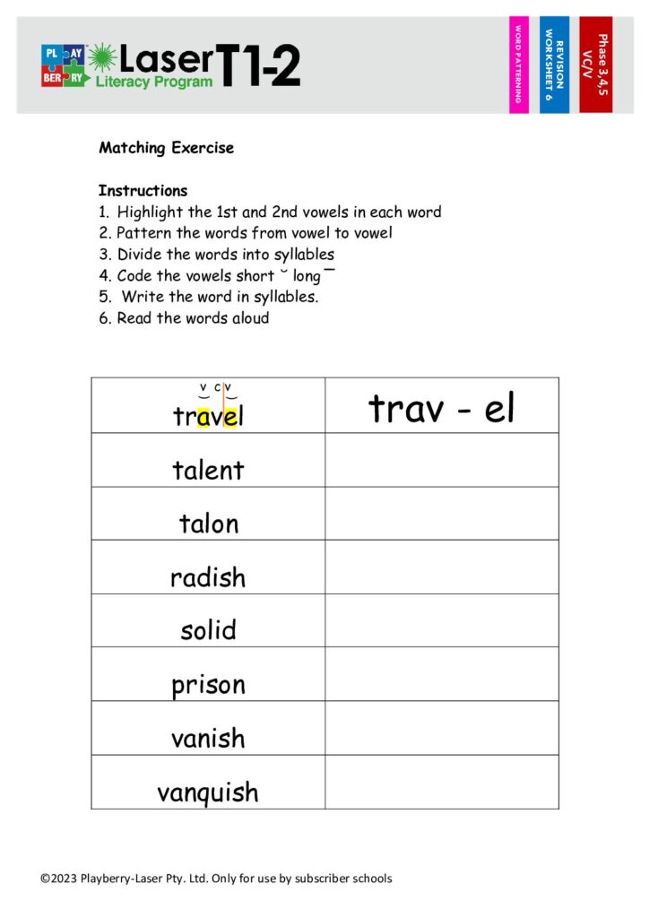 Syllable Division Worksheet V/V 1