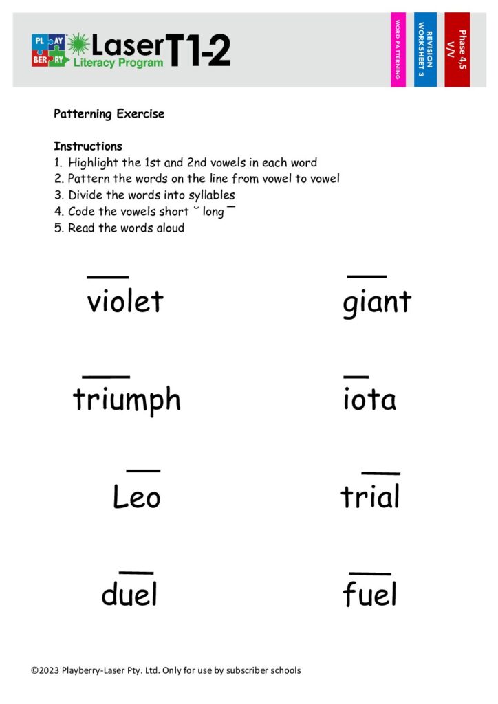Syllable Division Worksheet V/V 3
