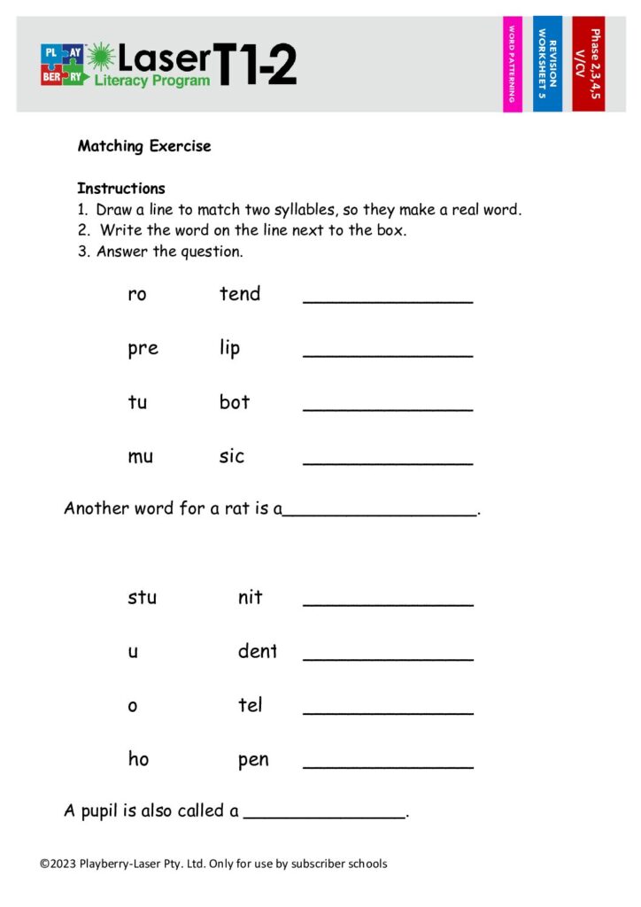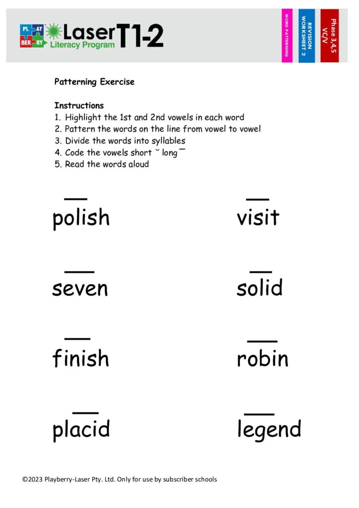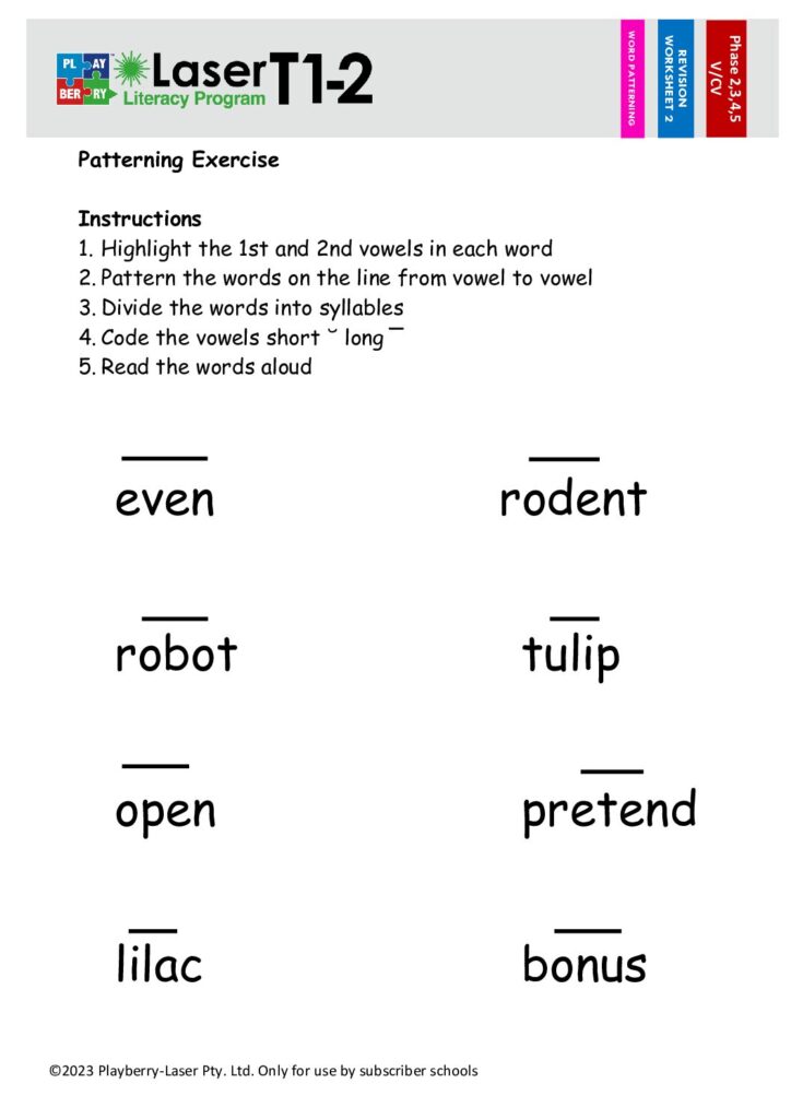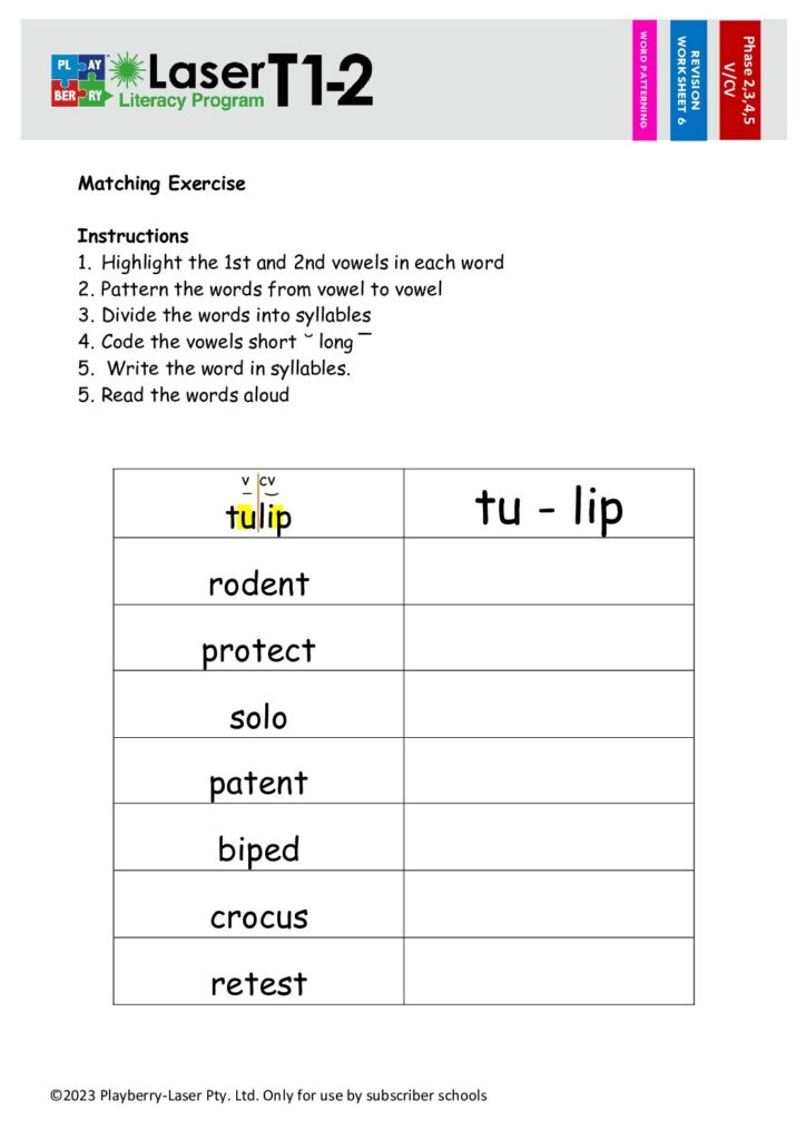 Syllable Division Worksheet V/CV 5