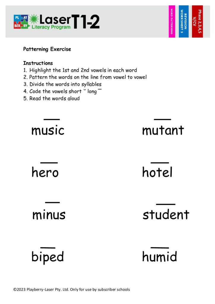 Syllable Division Worksheet V/CV 3