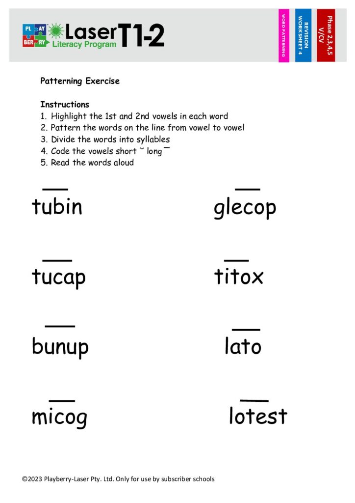 Syllable Division Worksheet V/CV 4