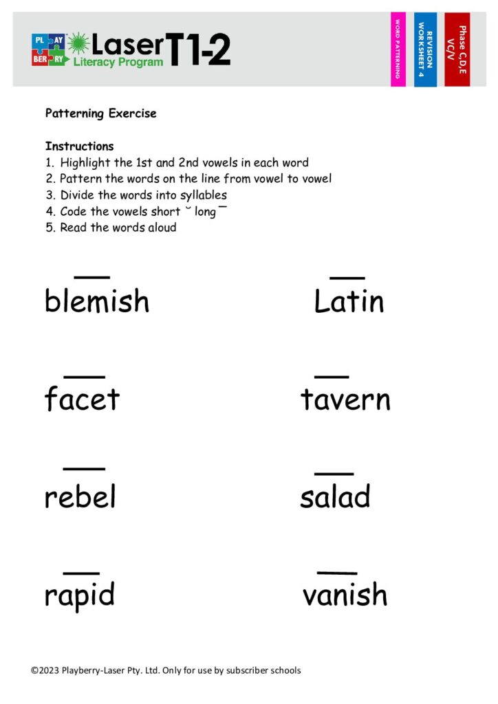 Syllable Division Worksheet VC/V 4