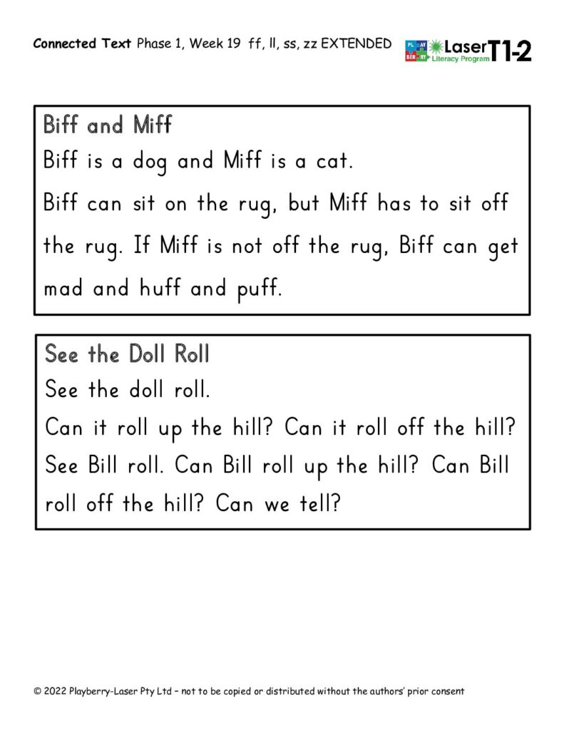 Phase 1 Week 19 – ff, ll, ss, zz Extended